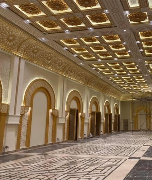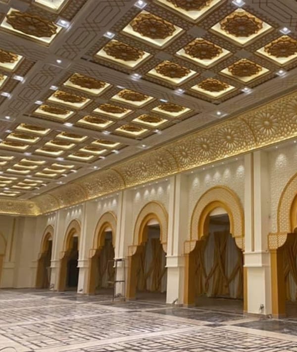 Welcome to Denesity Wedding Hall, located in Gulberg, Lahore. Our project scope includes crafting exquisite GFRG ceilings and intricate GRC moldings. Elevate your event space with our bespoke designs, marrying elegance with durability. Experience unparalleled craftsmanship and sophistication at Denesity Wedding Hall.